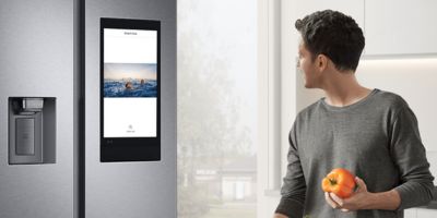In de deur van de koelkast is een scherm gemaakt. Hier kun je recepten bekijken, tv kijken en nog veel meer apps aansluiten.